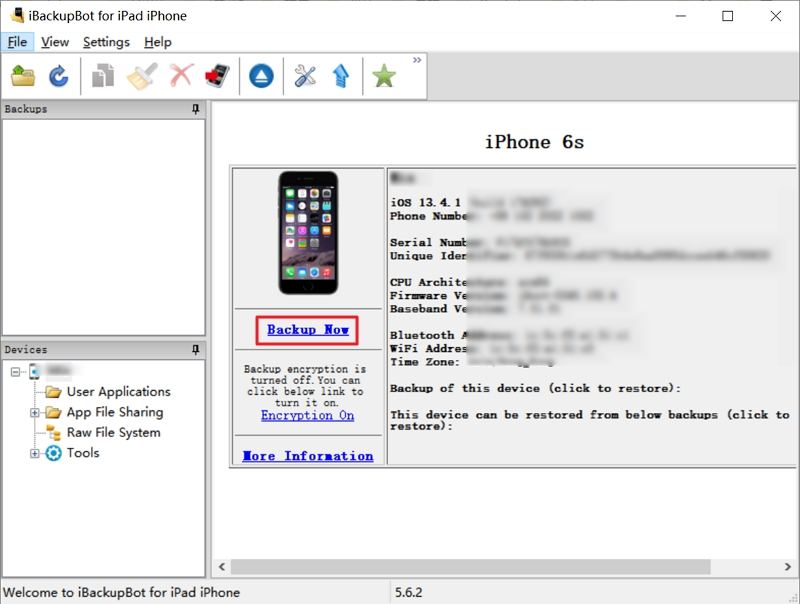 重置所有设置后,您可以启动 iBackupbot 应用程序,然后单击“立即备份”来备份数据。