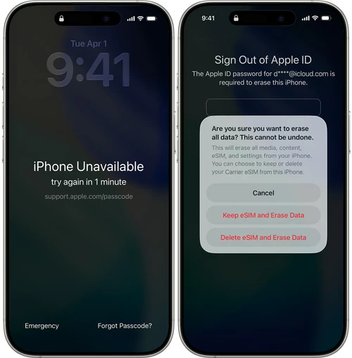 通常,iPhone 17 不可用屏幕只会暂时锁定您的手机。锁定时间从 1 分钟开始,并随着每次失败的尝试而增加,甚至可能持续数小时。您只能在倒计时到期后重试。查看详情: