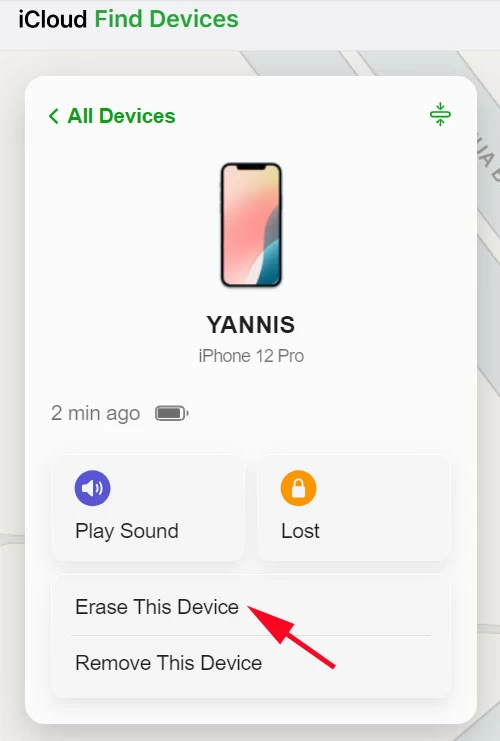 或者,iCloud 的“查找”提供了远程重置选项,可帮助您修复 iPhone 17 上的“不可用”屏幕,特别是在您无法访问计算机的情况下。