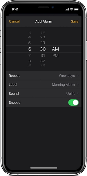 打开时钟应用程序,然后禁用“就寝时间”以创建标准闹钟。
