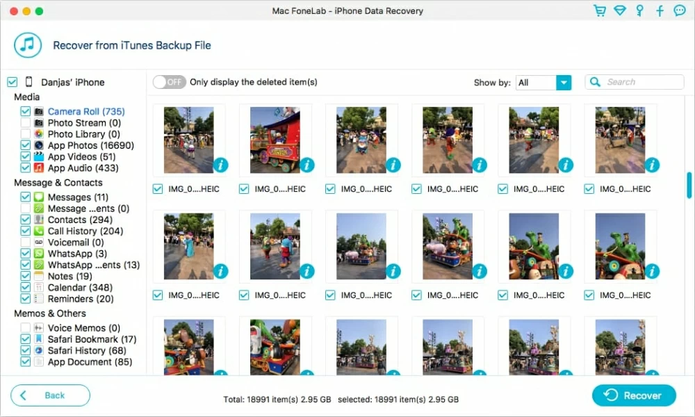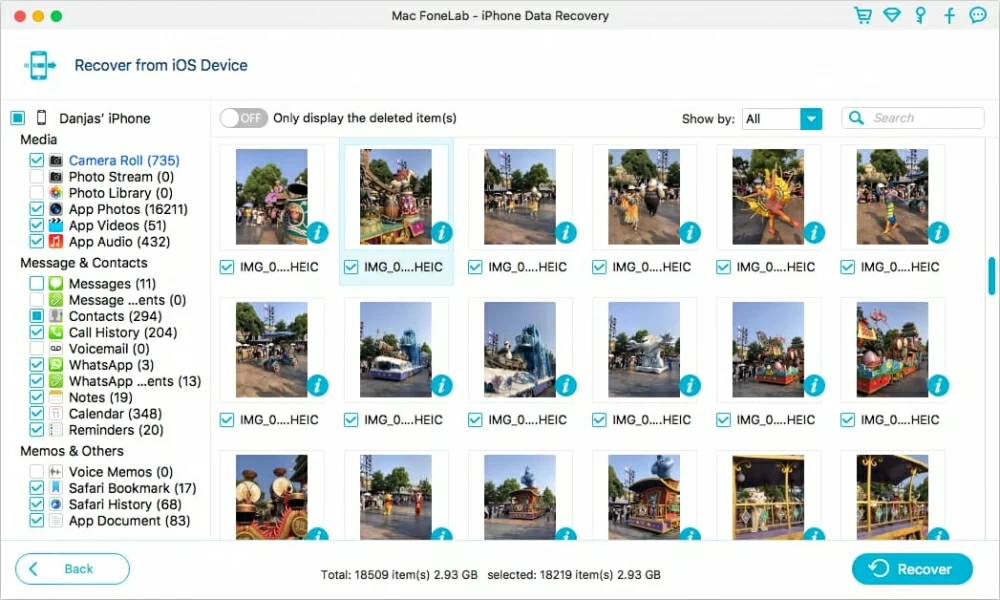 如果您切换按钮“仅显示已删除的项目“,它会过滤掉文件,只显示已删除的数据。这种方法可以为您节省很多精力。