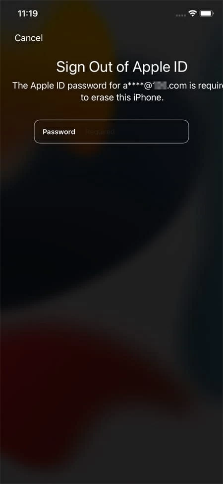 最后,系统会要求您退出 Apple 帐户。输入您的 Apple ID 密码,然后开始擦除过程。