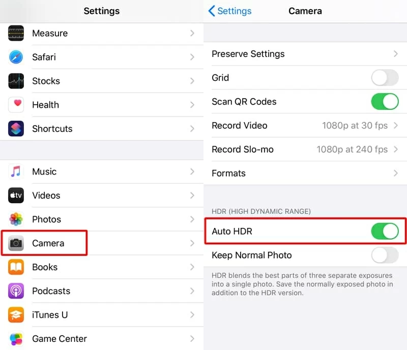 iPhone屏幕上的闪烁是否在切换照片应用程序上的图片时间歇性?许多用户通过停用照片应用程序中的HDR设置而成功解决了问题,并且闪烁已消失。