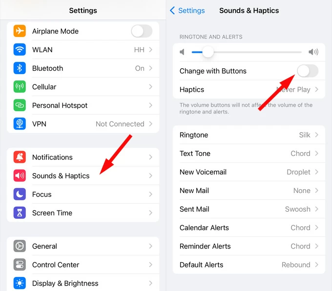 关闭“使用按钮更改”功能后,检查是否有影响。如果您的 iPhone 仍然自动降低铃声,请尝试执行下一个故障排除步骤。