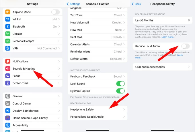 您是否在耳机安全选项卡中打开了“减少大声”?每当您连接到耳机时,此功能都会自动降低铃声音量。