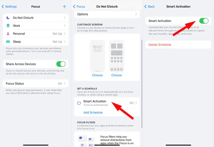 对每个焦点模式重复这些步骤,以禁用或删除在 iPhone 锁定或解锁时可能使来电和通知静音的日程安排。