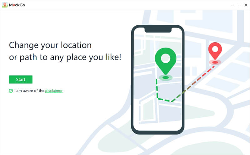 - 步骤1安装后,启动应用程序。会弹出GPS更改界面。旁边有一个免责声明框。勾选它并单击 Enter。
