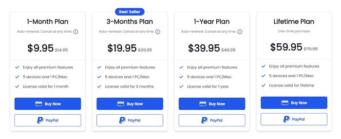 MockGo 不是免费的。您必须先付费才能使用该软件。您可以根据需要利用多种计划。从月度、季度、年度或终身计划中进行选择。不同计划的价格均在 Foneazy 网站上详细说明。