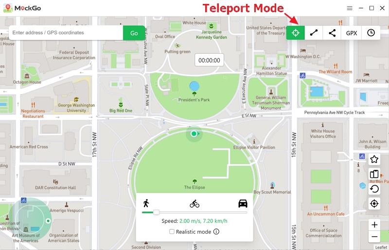 第四步:接下来,你会看到一张地图。单击顶部右侧的第一个图标,更改为传送模式。这使得伪造您的位置成为可能。