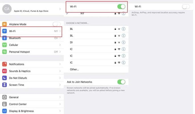 步骤1。解锁您的iPhone,iPad或iPod Touch,然后转到“设置”,然后选择“ WiFi”>“ WLAN”。