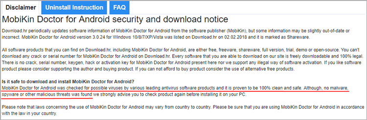 附件:Download.hr 的一份声明,声明Android 版 MobileKin Doctor 安全且 100% 干净经过安全测试后。