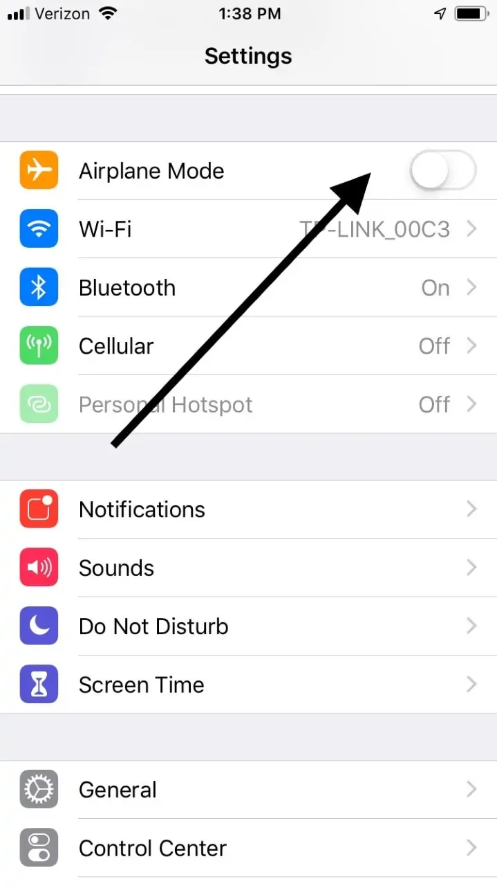 - 用手指打开和关闭它。如果成功的话,它会变成绿色。这样做将禁用 Wi-Fi、蜂窝数据和蓝牙。