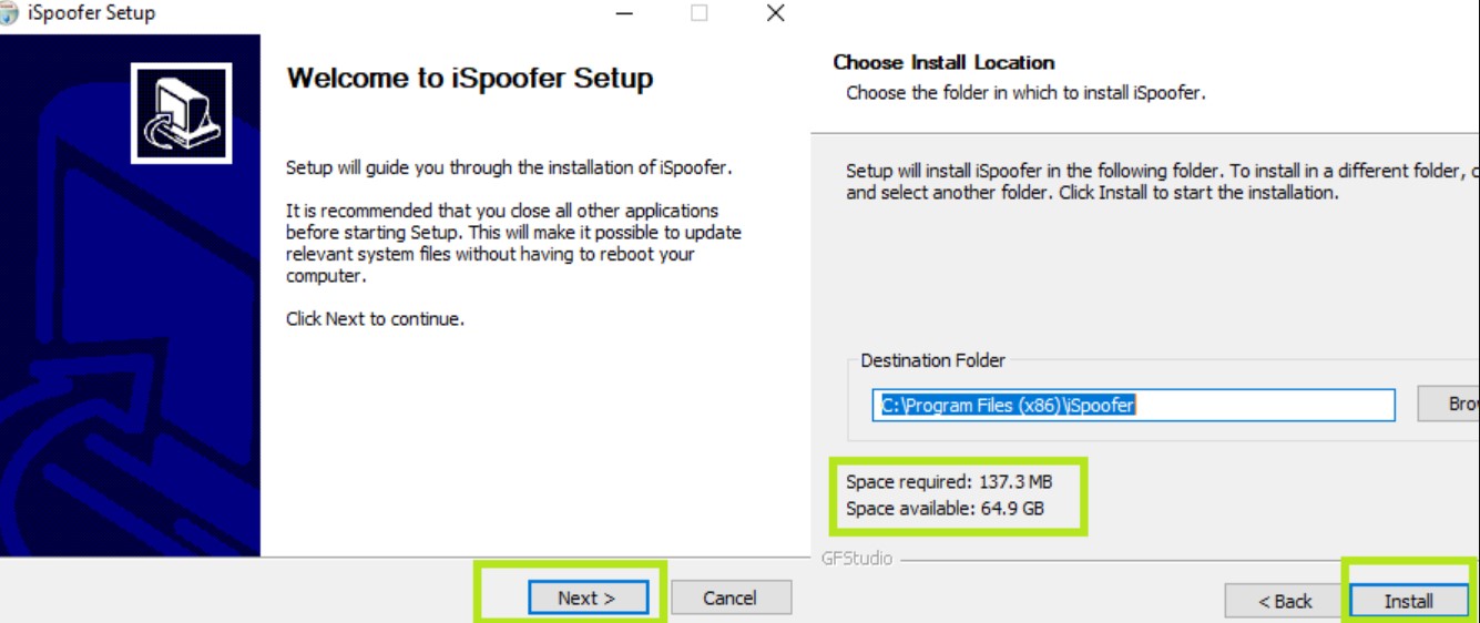 笔记:确保系统上有足够的空间,因为需要137 MB的免费存储空间。在这种情况下,如果您无法安装ISPOOFER,则可能是由于系统上缺乏存储空间或执行文件损坏。这里的提示是要从系统中摆脱不需要的文件,再次下载EXE文件,希望这次您不会遇到任何麻烦。