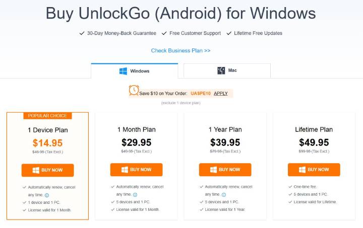 这里给你一个很大的折扣。您可以在购买 UnlockGo Android 的任何许可计划时应用此功能。