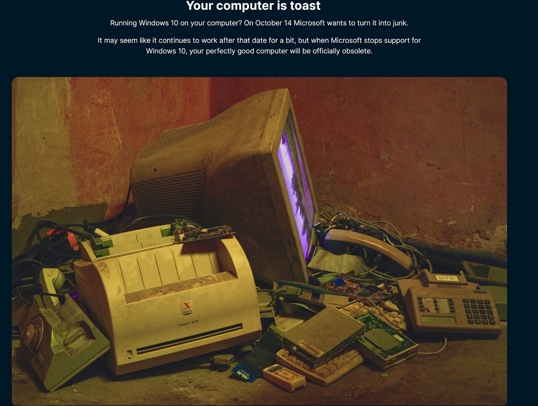 虽然 Windows 10 终止支持确实意味着操作系统将不再获得更新,但将旧电脑称为“祝酒”有些牵强,因为大多数 Windows 10 电脑运行良好。