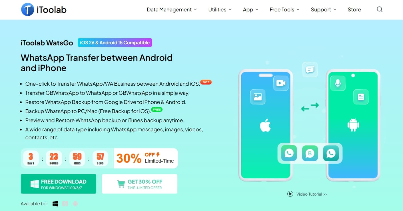 总而言之,通过备份将 WhatsApp 数据传输到 Google Drive 对于您的聊天消息来说是一个非常明智的决定。本文介绍了如何在 Android 上的 Google Drive 中备份、查看和恢复 WhatsApp。然而,iPhone用户不允许备份到Google Drive,因此他们可以使用iToolTab WatsGo。该程序是传输、管理和恢复 WhatsApp 数据的完美解决方案。
