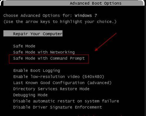 步骤2:按向上或向下键选择带命令提示符的安全模式。按进入。