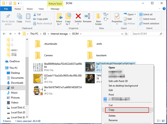步骤 5。将复制的数据粘贴到计算机上的另一个文件夹中。