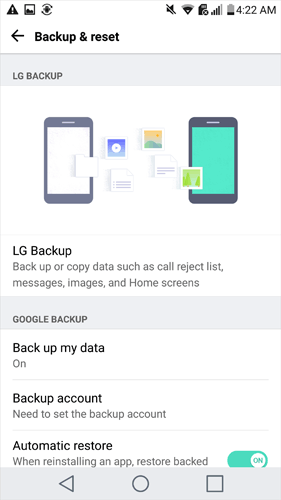 LG 还为其用户提供 LG Cloud。此功能使用户能够将主屏幕、设备设置、应用程序和联系人保存到云或从云中移动。因此,当您手边没有电脑时,您可以选择将手机数据备份到 LG 云,然后在需要时恢复。