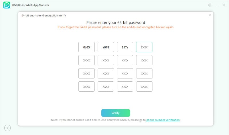 在这里,您需要输入新创建的密码并按“验证”按钮开始备份过程。然而,iPhone用户只需在按下“备份”按钮后等待备份过程完成即可。