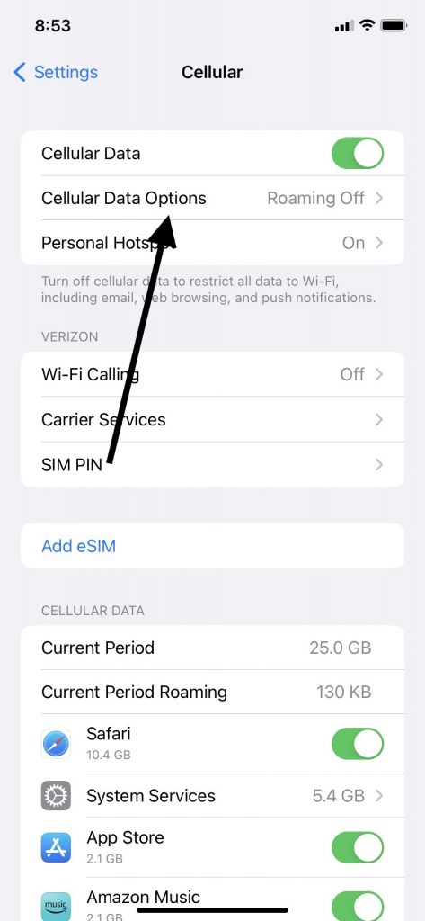 前往设置应用程序 在您的 iPhone 上,然后点击蜂窝网络。轻敲蜂窝数据选项。