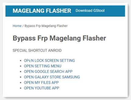 Magelang Flasher 为我们提供了 APK 文件,可以帮助用户绕过支持设备上的 FRP 锁。然而,使用 APK 文件绕过 FRP 并不是一个简单且技术性的过程。它显示了基本教程,但没有提供全面的演练和视频指南,以使其变得简单。