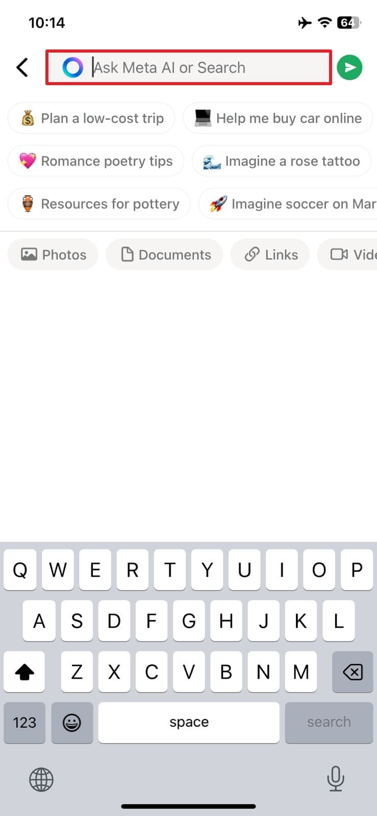步骤1在您喜欢的设备上打开消息应用程序后,查找“Meta AI”选项或图标并点击它。如果您是第一次使用该功能,您可能需要接受条款和条件。