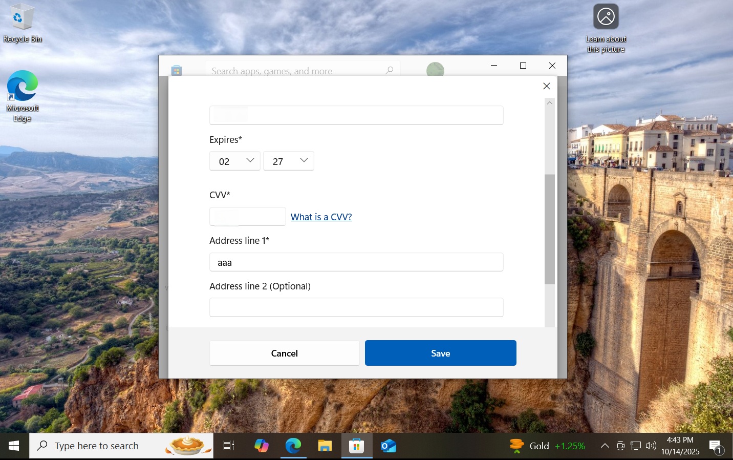 于是,我再次点击了 29.99 美元的选项,最终进入了付款页面。之后,我填写了卡的详细信息,然后保存了卡。