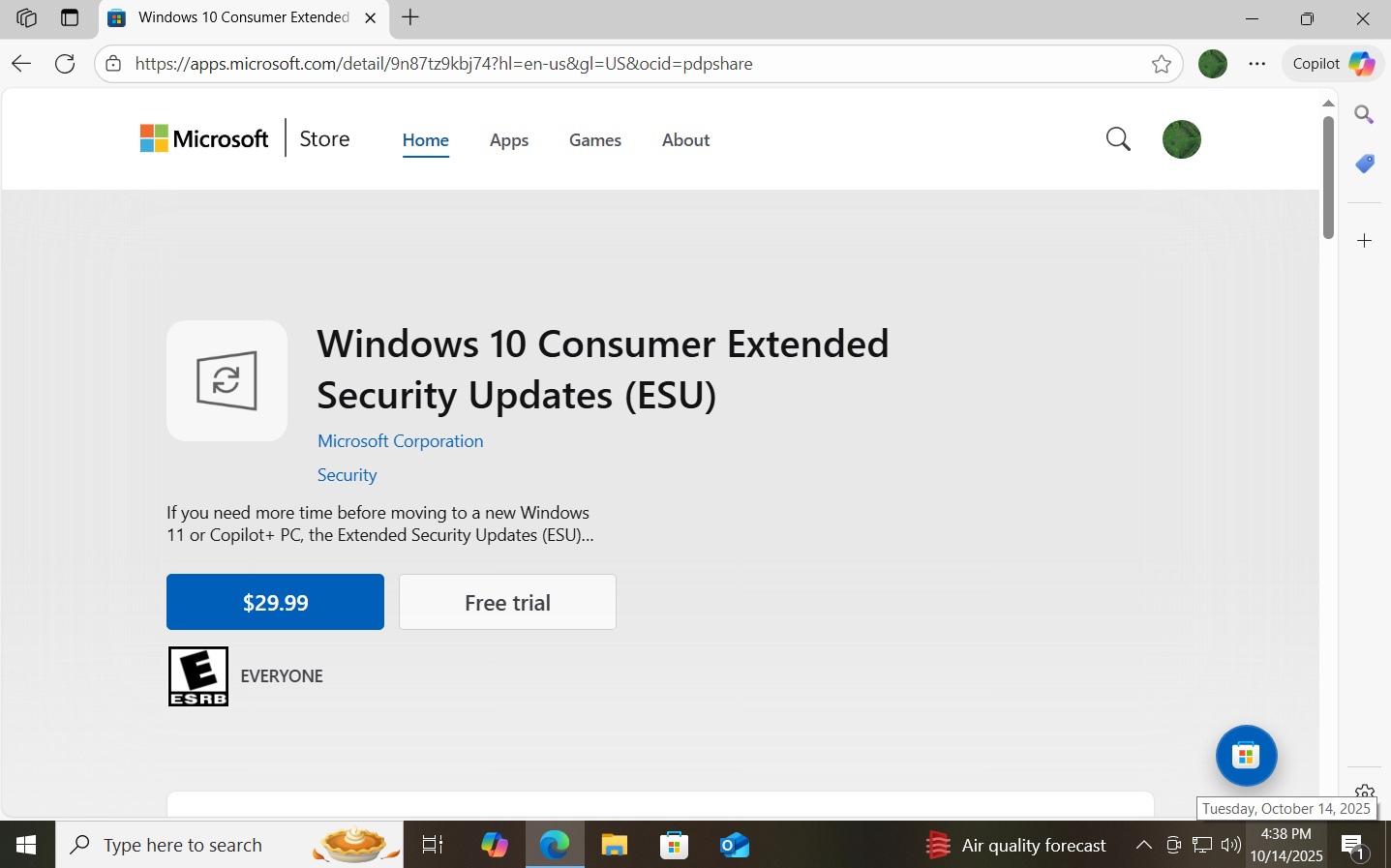 微软在商店中发布 Windows 10 30 美元 ESU(扩展安全更新)