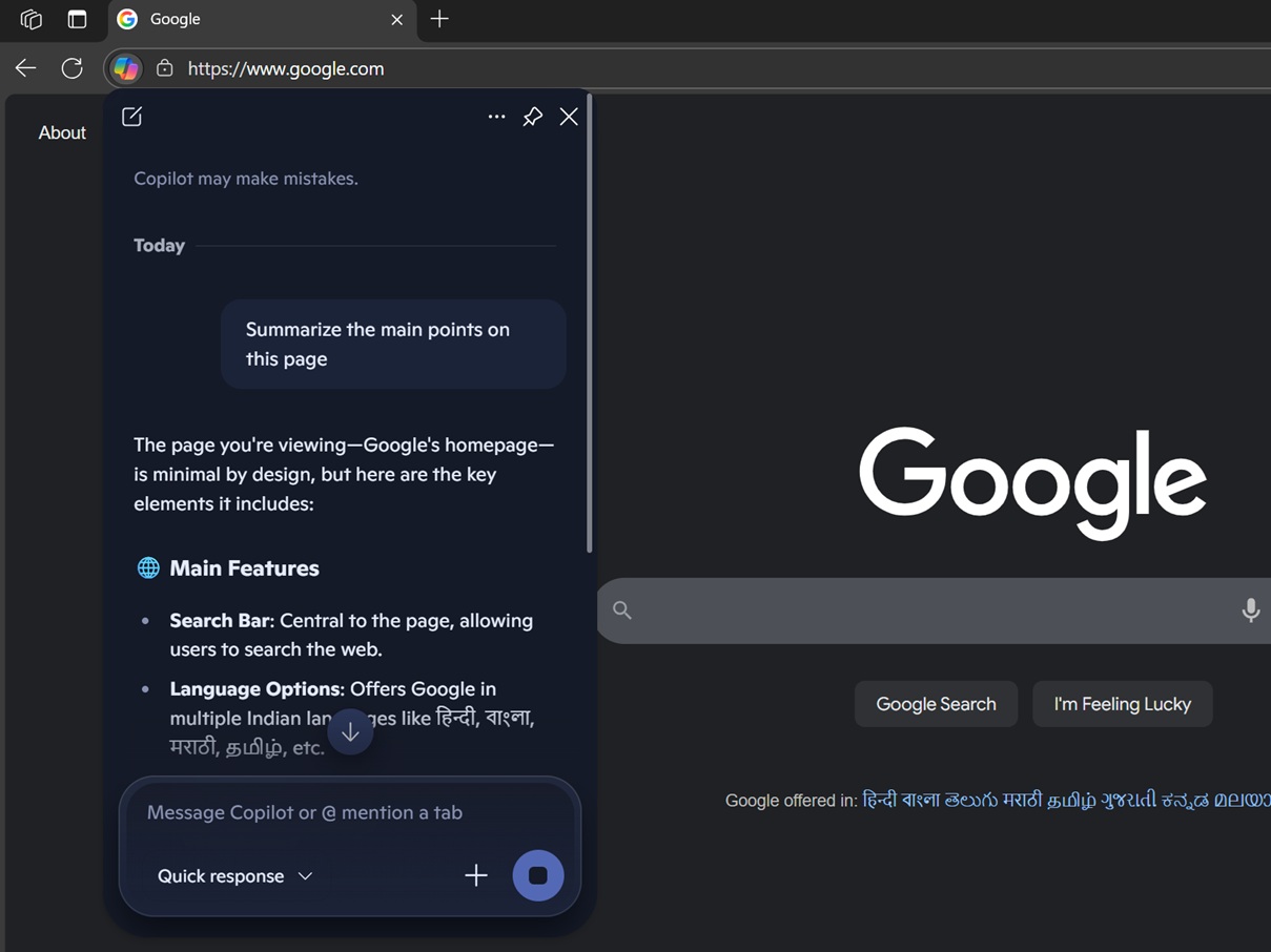 副驾驶模式还会在地址栏中打开“询问副驾驶”,可以查看选项卡的内容并进行总结或回答问题。但我不会称其为“自动化”。这与困惑彗星所做的相去甚远,但未来可能会改变。正如我上面提到的,Edge Copilot 调查证实微软希望提升游戏水平。
