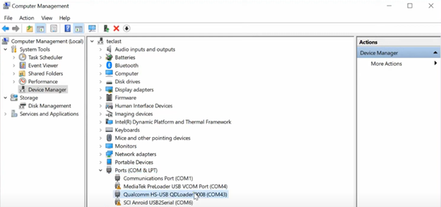 - 步骤5 将设备引导至 EDL 模式:将手机置于紧急下载 (EDL) 模式并将其连接到 PC。该设备应显示为 Qualcomm HS-USB QDLoader 9008。