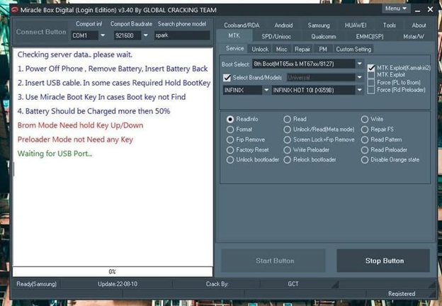 使用 Miracle Box 在 Qualcomm 设备上绕过 FRP 的步骤: