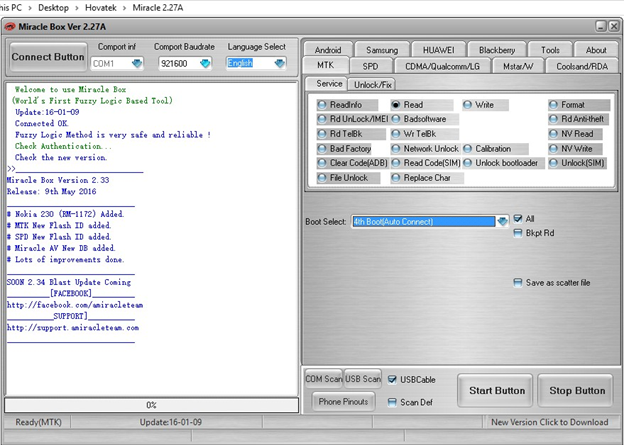 - 步骤6 在 Miracle Box 中选择端口:返回 Miracle Box 并选择检测到的设备端口。