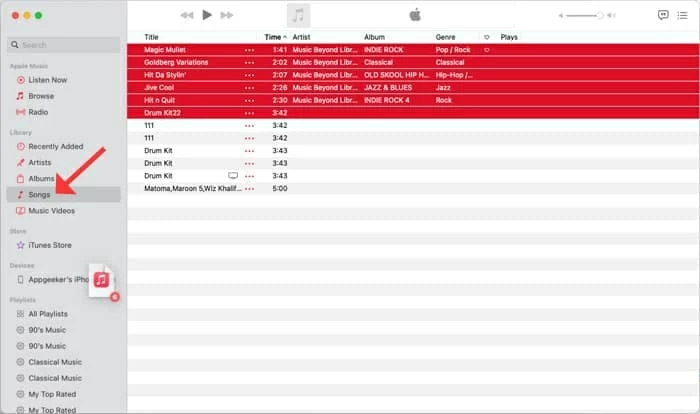 3. 前往侧边栏库下的“歌曲”以访问您的库。