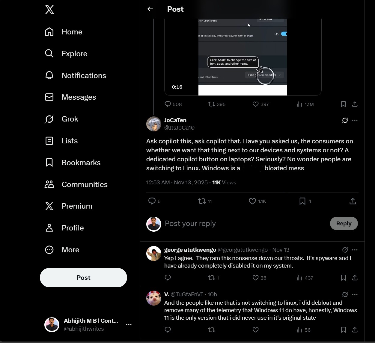 话虽如此,微软一直在 Copilot 和整个代理操作系统的惨败中大发雷霆,这甚至让 Windows 首席执行官在他的 X 帖子上屏蔽了评论,他在第一句话中确认了“Windows 正在演变成一个代理操作系统”。