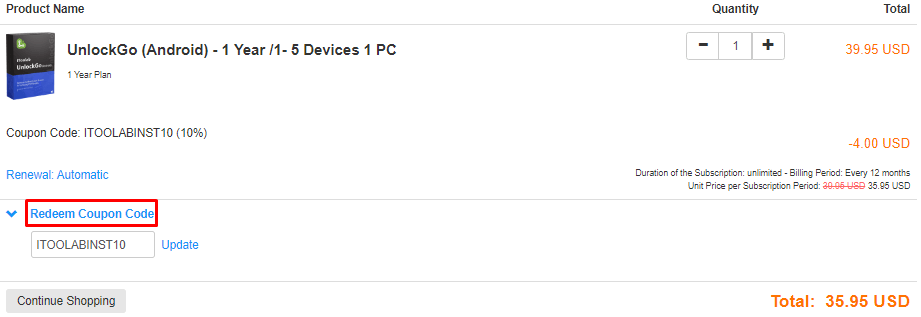 您准备好尝试 iToolTab UnlockGo (Android) 了吗?这是给您的 10% 折扣优惠券代码。