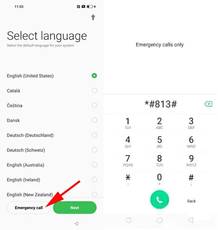 在 OPPO 紧急呼叫上使用特定的旁路代码可让您启用 OEM 解锁模式并访问开发者选项以擦除所有数据和设置,包括 FRP 锁。这样,无需PC即可轻松绕过OPPO FRP。