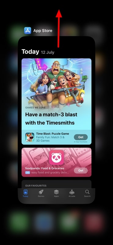 对于主页按钮iPhone:首先按双按主机按钮,该按钮将打开应用切换器。然后,按住并滑动目标的“应用商店”应用程序,以迫使其正确关闭。