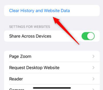 - 现在,点击清除历史记录和网站数据。点击它进行确认。