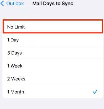 将您的设备配置为同步电子邮件而没有任何日期限制,可确保访问您的所有邮件,无论其年龄如何。如果您经常需要访问较旧的电子邮件,此设置会很方便。为此: