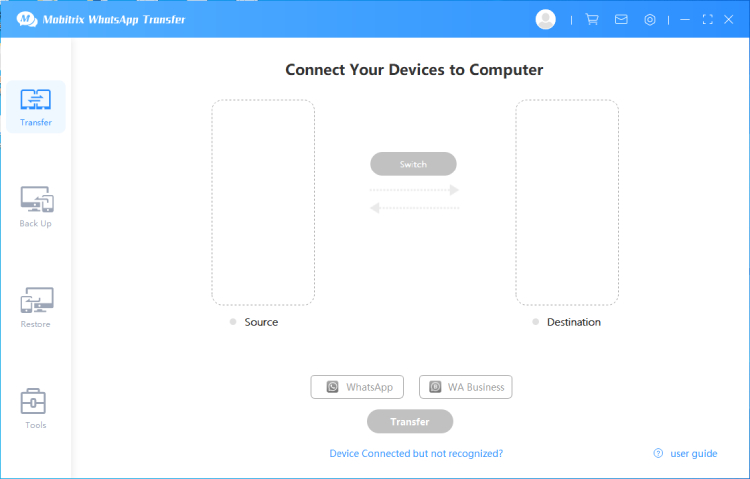 Mobitrix WhatsApp 传输是另一个很棒的应用程序,可以在 Android 和 iOS 之间轻松传输 WhatsApp 数据。它易于使用、完全安全,并提供 30 天退款保证。 Mobitrix 还提供最好的客户服务之一,为用户提供 24/7 支持。