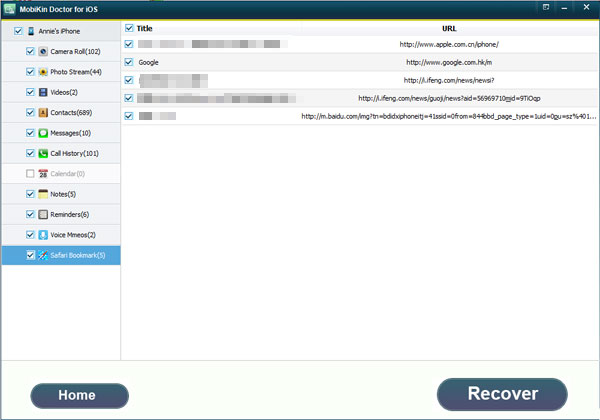 步骤 3. 在 iPhone 上恢复已删除的 Safari 书签