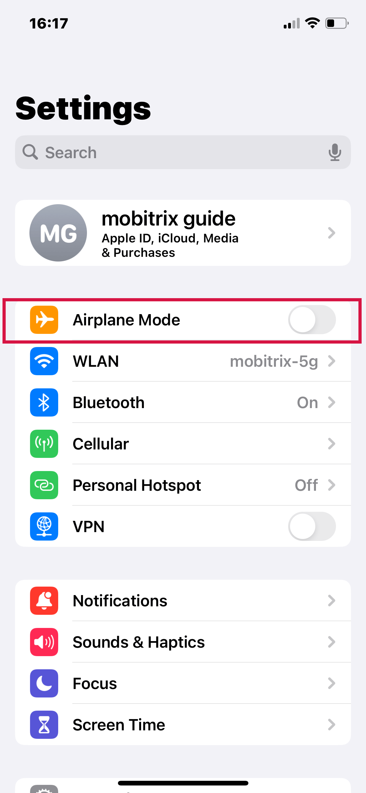 2. 检查飞行模式:它在活动时禁用所有无线通信。