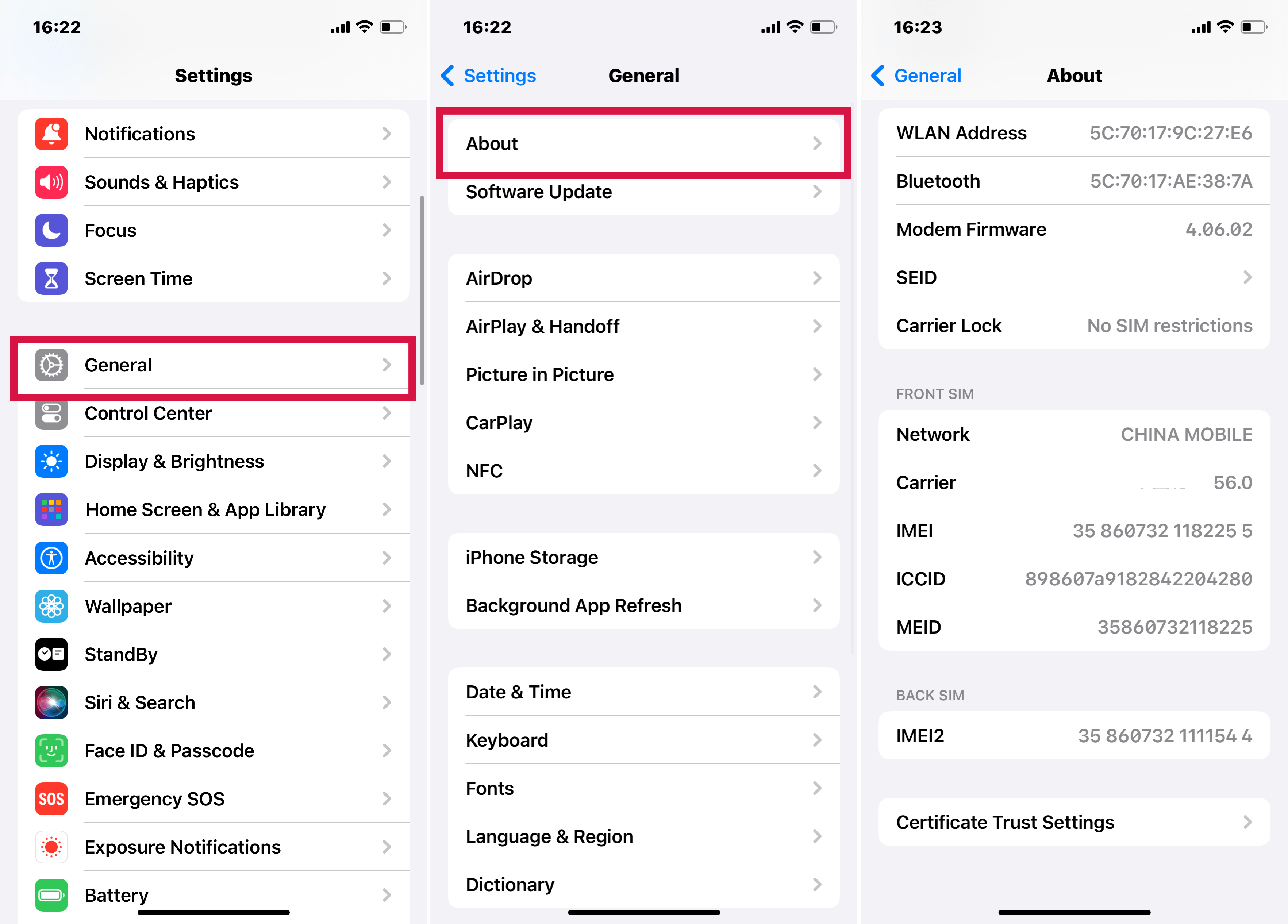 要检查运营商设置版本,请点击设置 > 常规 > 关于,然后查看运营商旁边。