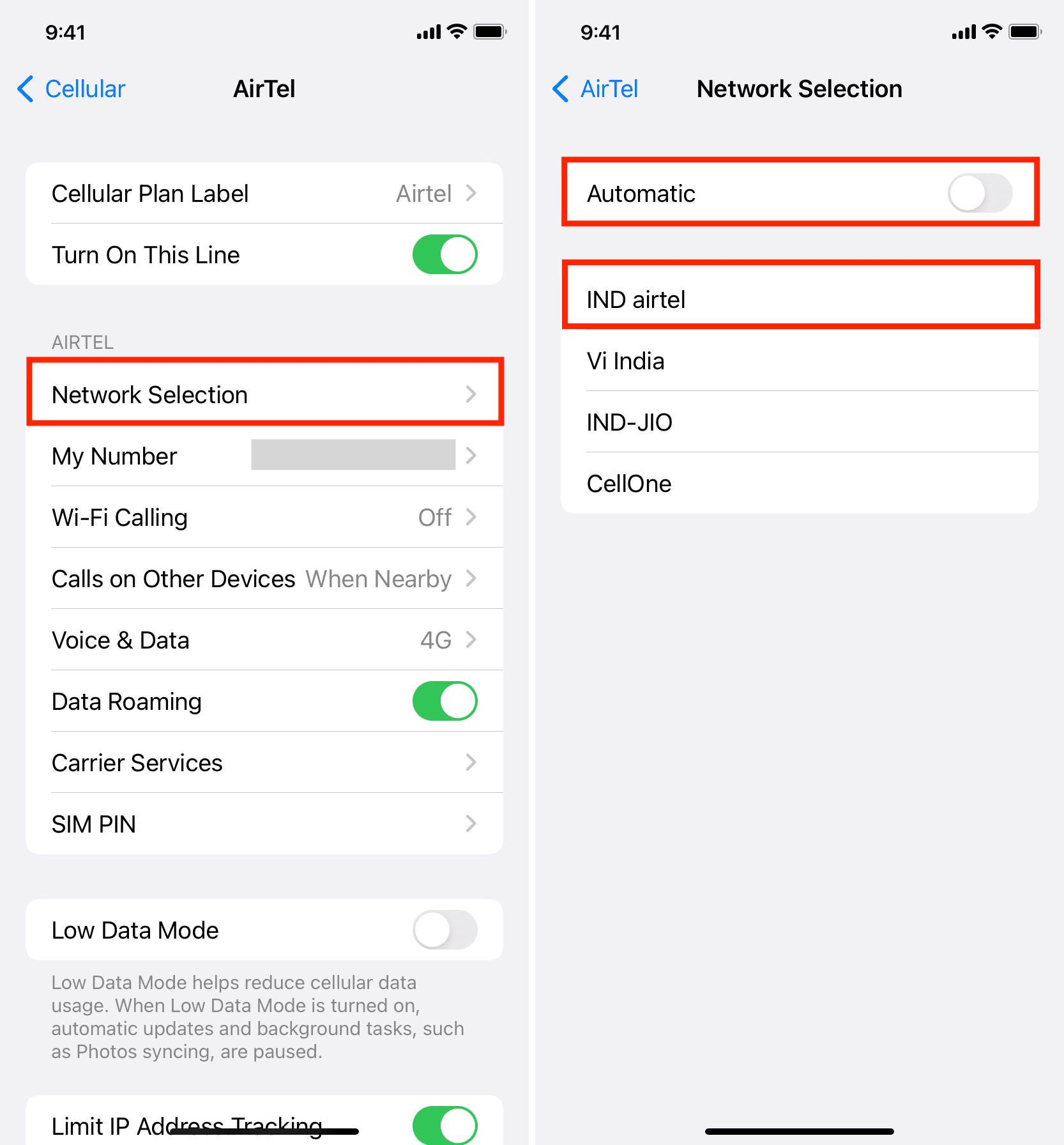 在“设置”中,点击“运营商'并关闭自动运营商选择。