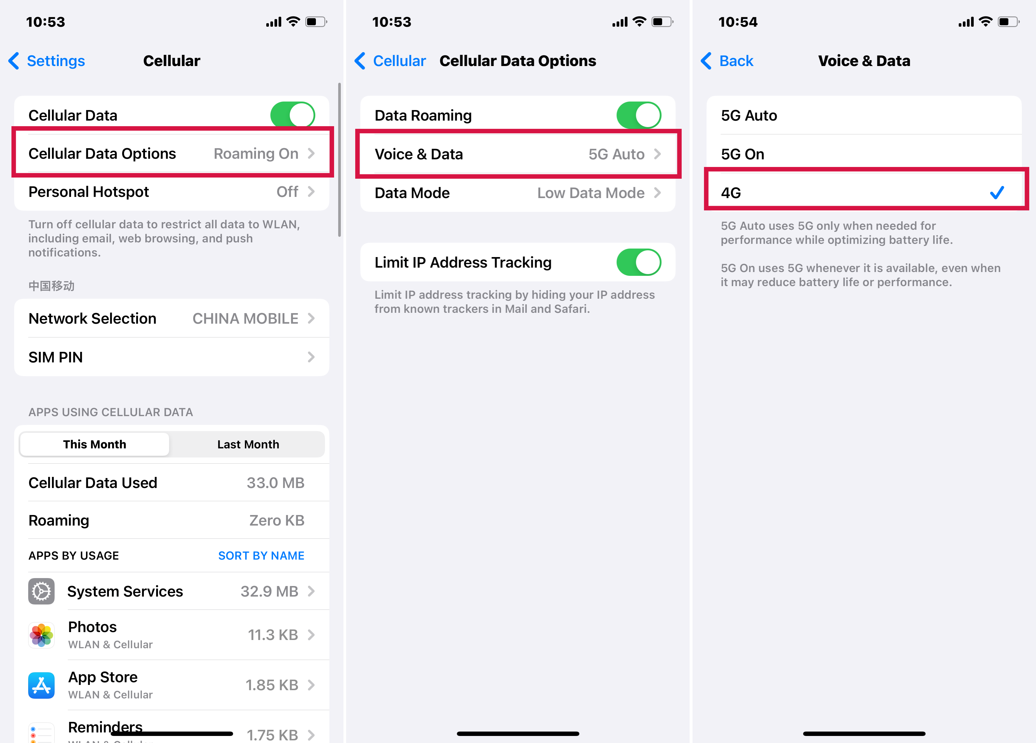 有时,从 5G 切换到 4G 可以解决网络通信问题。