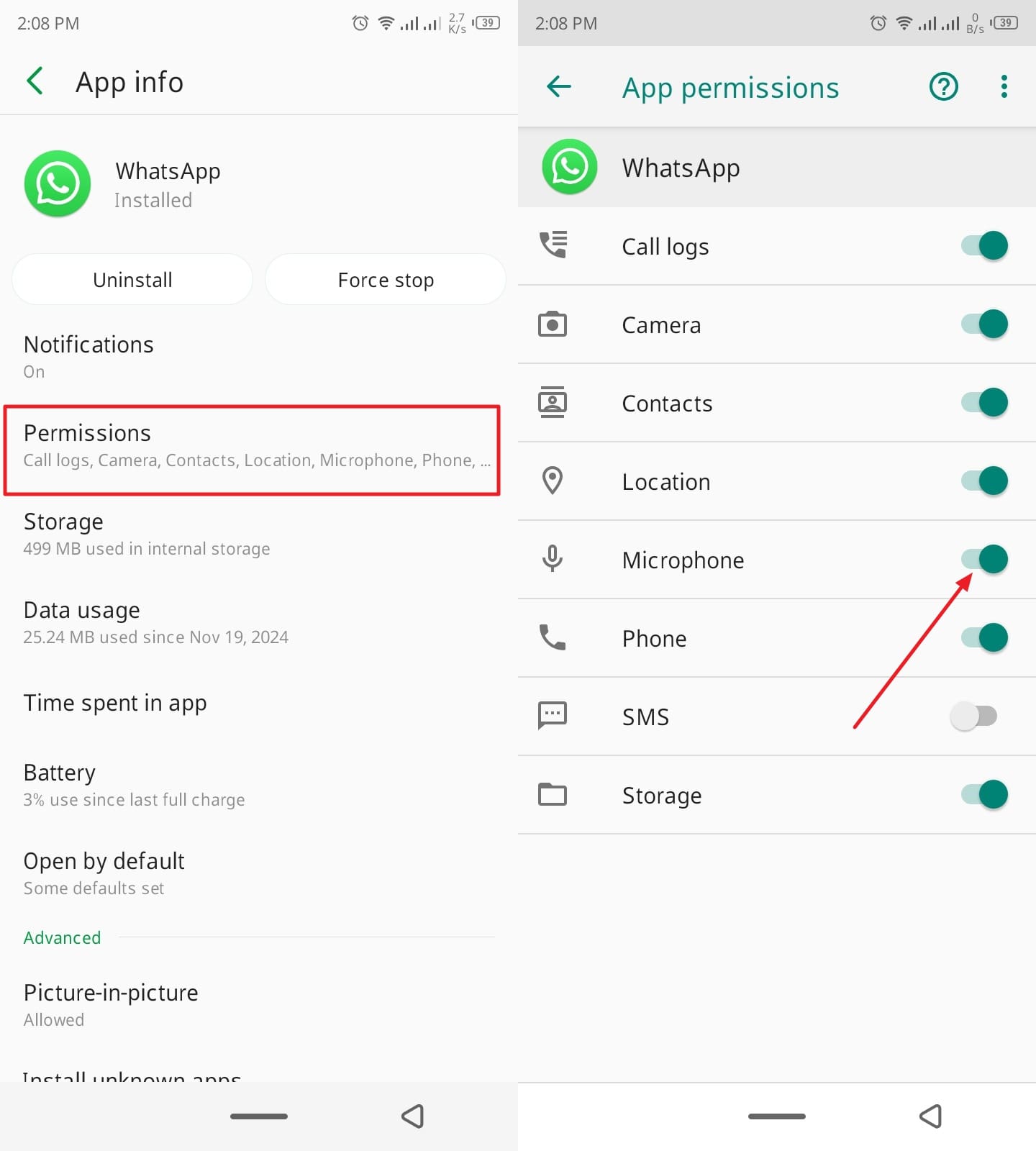 - 未授予的权限:有时,您忘记授予消息应用程序使用麦克风的权限。如果禁用这些设置,您将无法使用任何通话和语音相关功能。