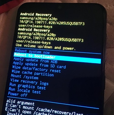 现在,您的手机将启动进入恢复模式。导航至重新启动到引导加载程序使用音量增大和减小键选择选项,然后按电源按钮将其选中。