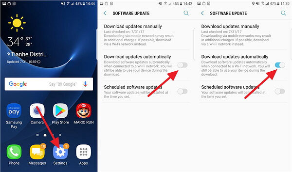 相反,一些用户可能厌倦了每次手动更新软件,因此他们倾向于自动下载软件更新。三星手机也允许这样做。通过此功能,用户无需定期检查更新信息并点击几下即可开始更新。他们只需在三星和 Wi-fi 之间建立连接,然后打开“自动下载更新”功能即可轻松完成该过程。