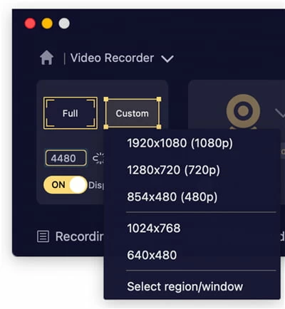 Mac 版屏幕录像机可以灵活地记录自定义尺寸、整个屏幕、一个区域、一个窗口或固定的宽高比。